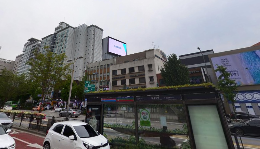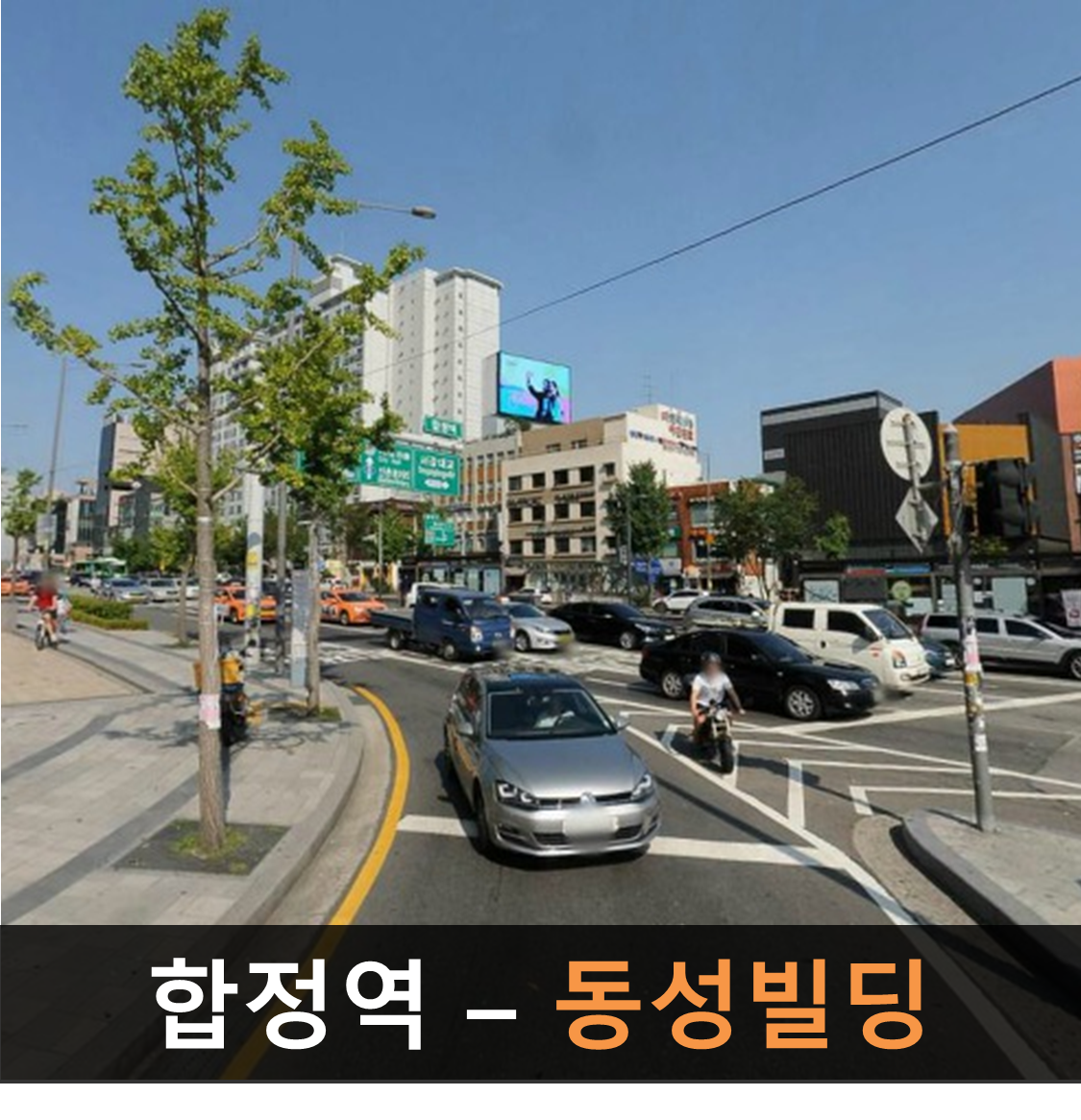 양화대교에서 홍대, 신촌, 아현, 종로, 명동을 진입하는 합정역 사거리 설치된 전광판