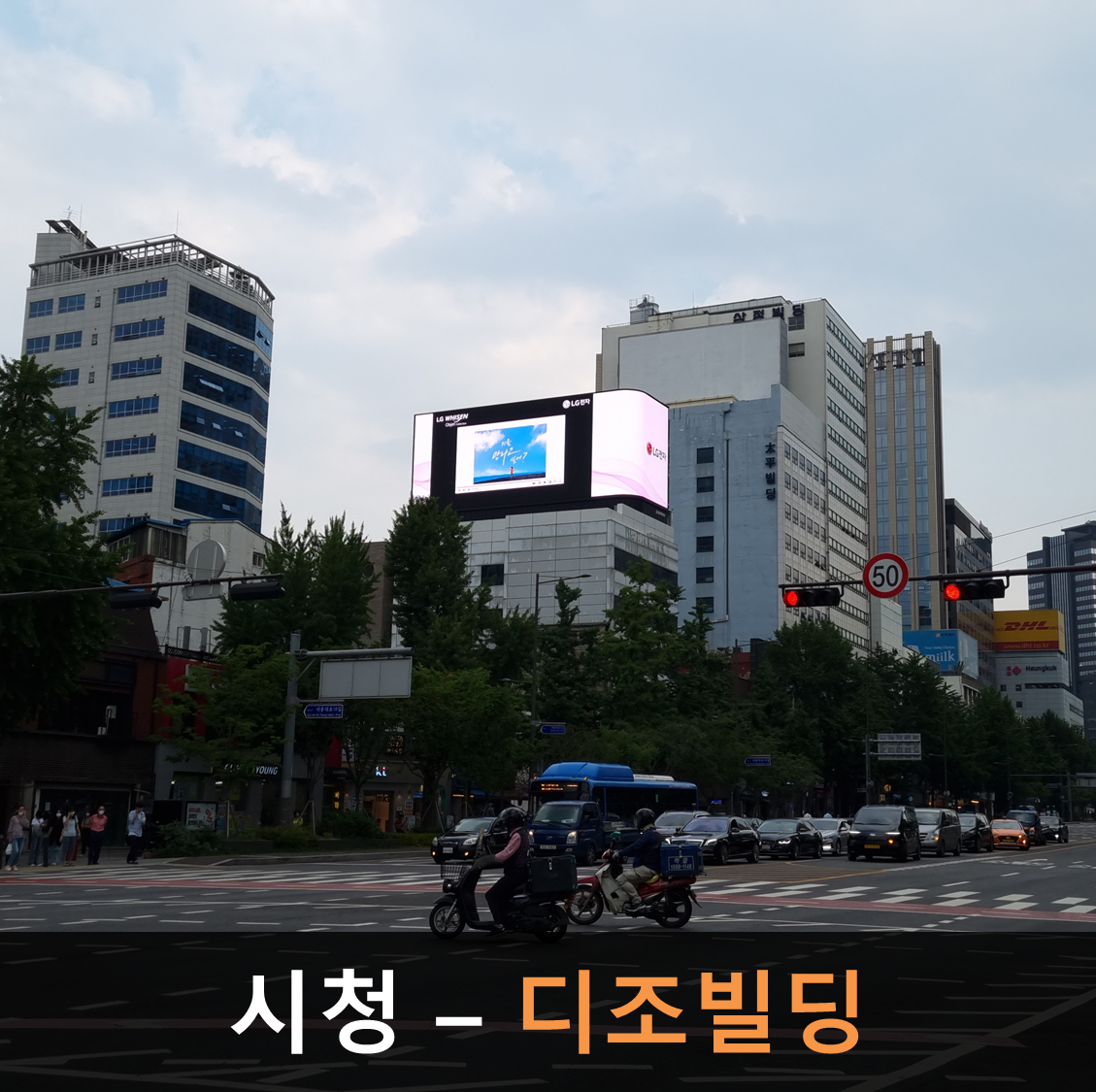 시청에서 남대문, 서울역 방면으로 이동하는 다수의 차량들에게 집중 노출