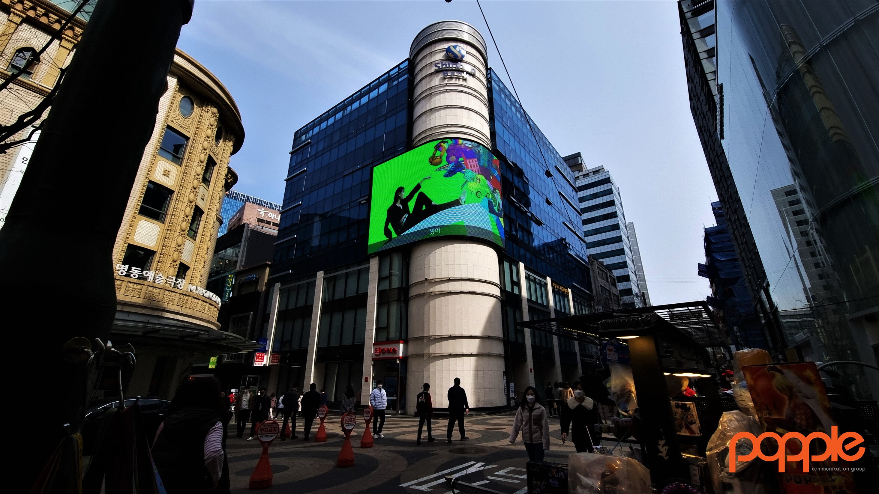 대한민국에서 유동인구가 가장 많은 명동 유네스코길 예술의 극장 사거리에 위치한 전광판