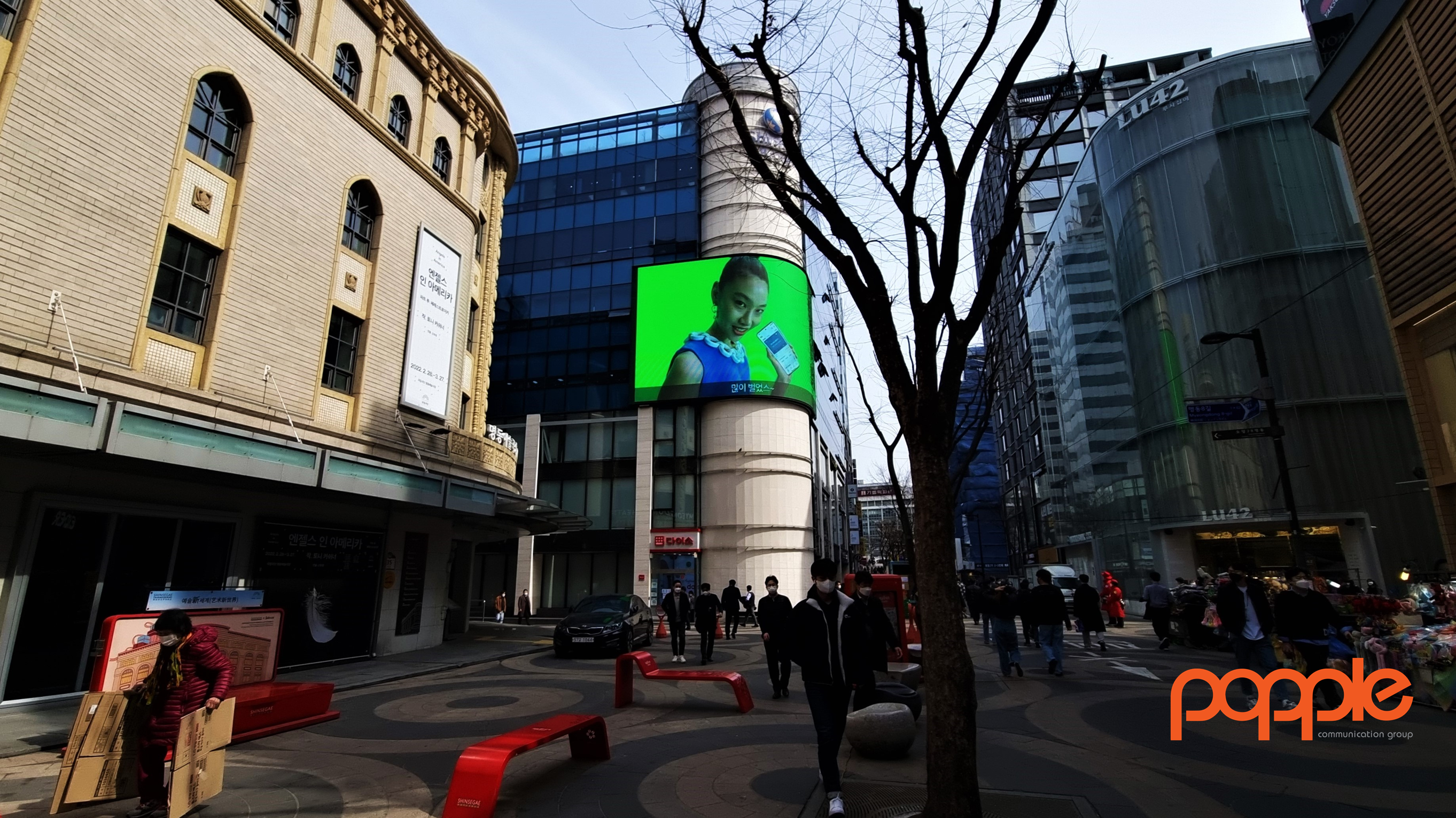 대한민국에서 유동인구가 가장 많은 명동 유네스코길 예술의 극장 사거리에 위치한 전광판