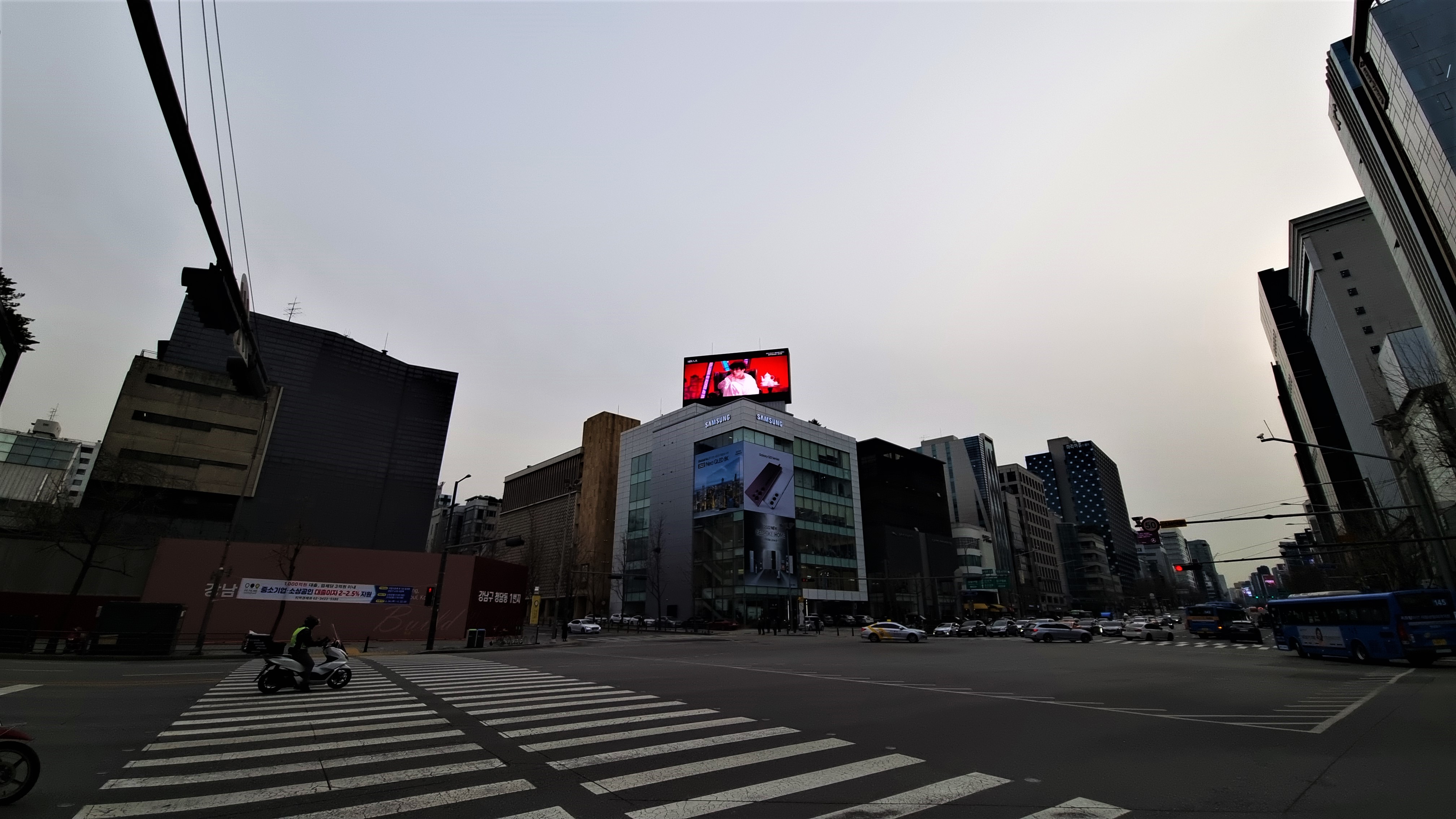 전광판 옥상높이가 낮고 사거리 전체를 커버하는 각도에 대형규격으로 설치되어 노출 및 가시거리 최적화