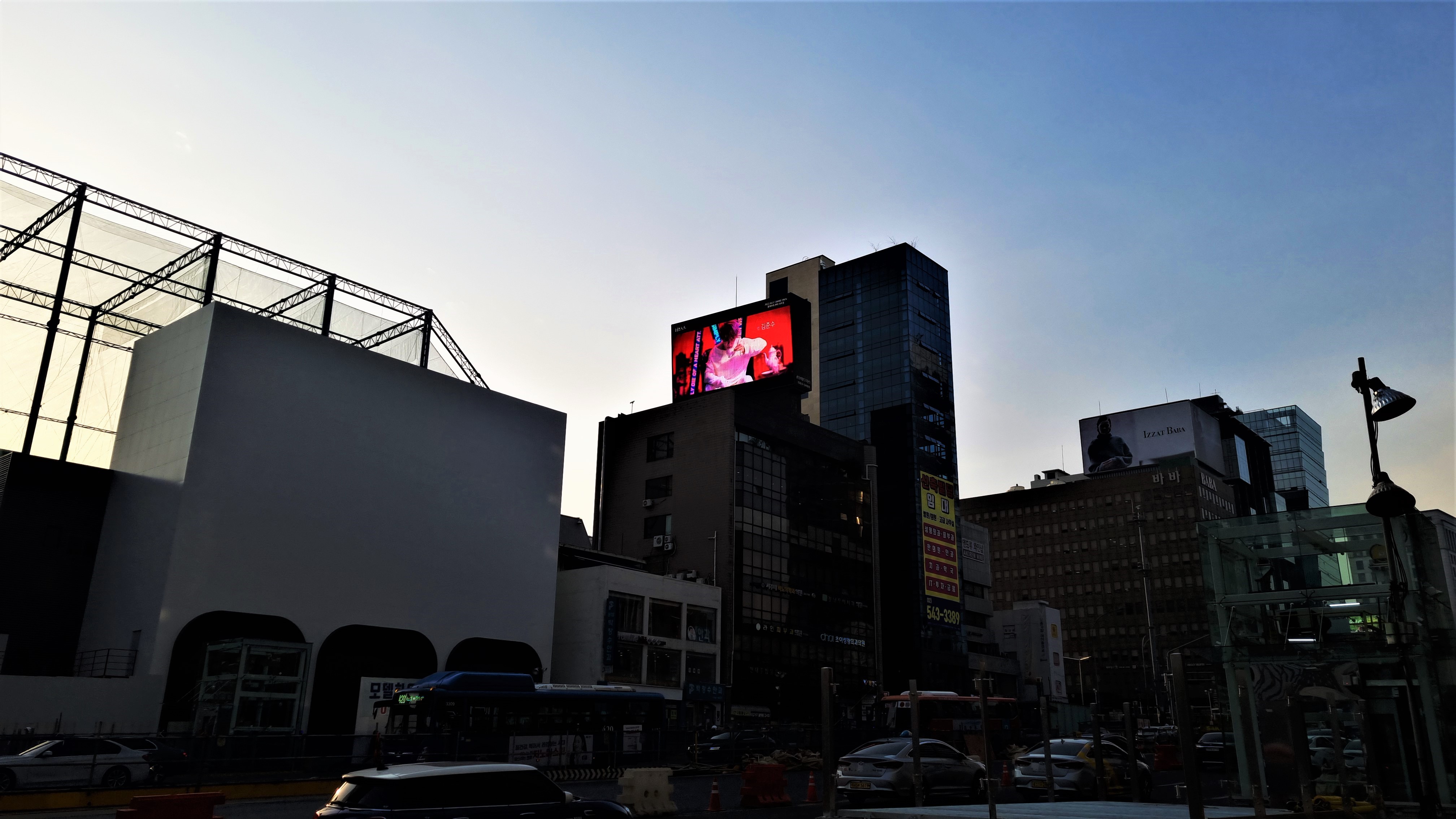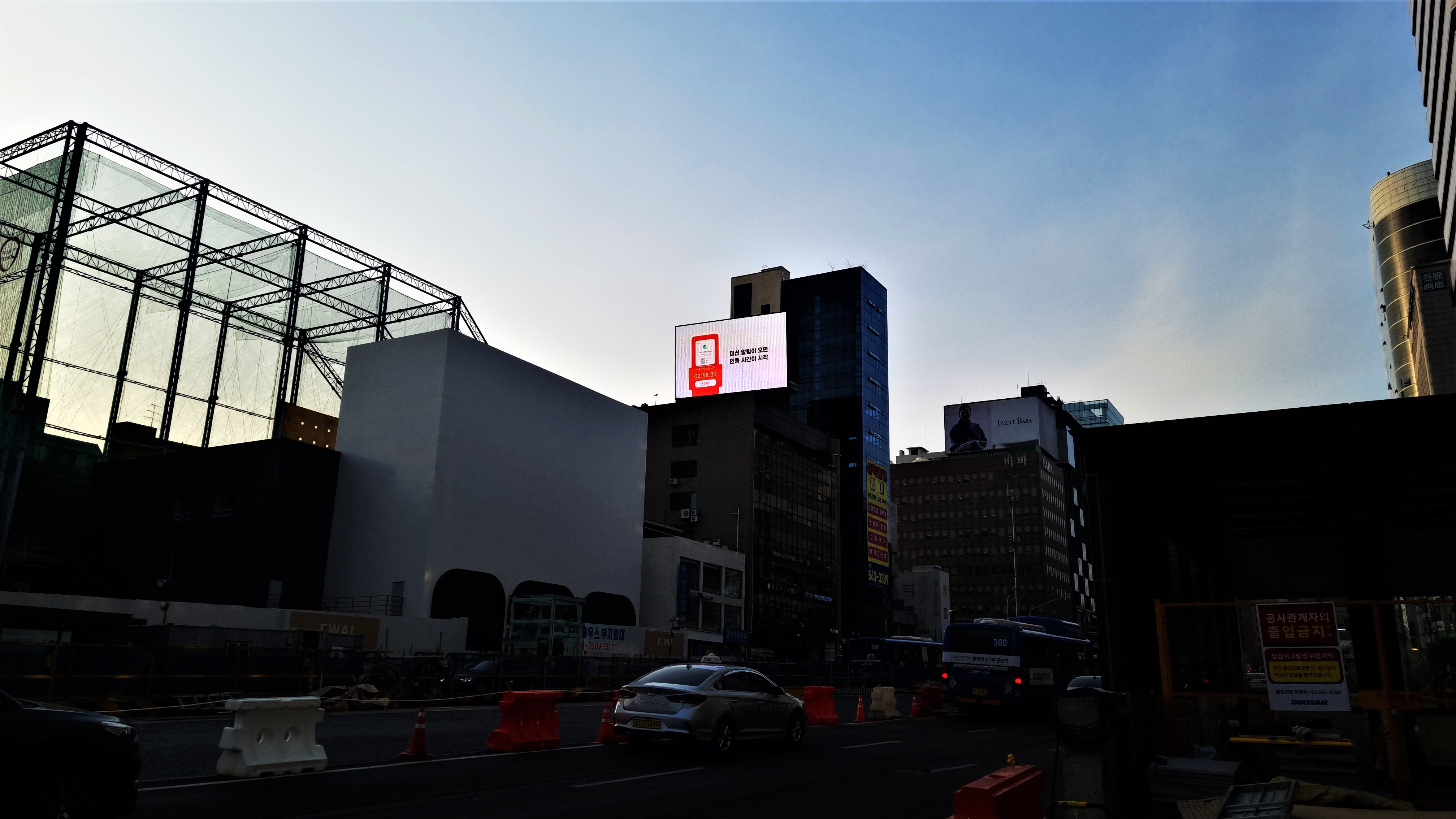 강남대로 논현역 사거리에 설치된 국내 유일의 양면 전광판