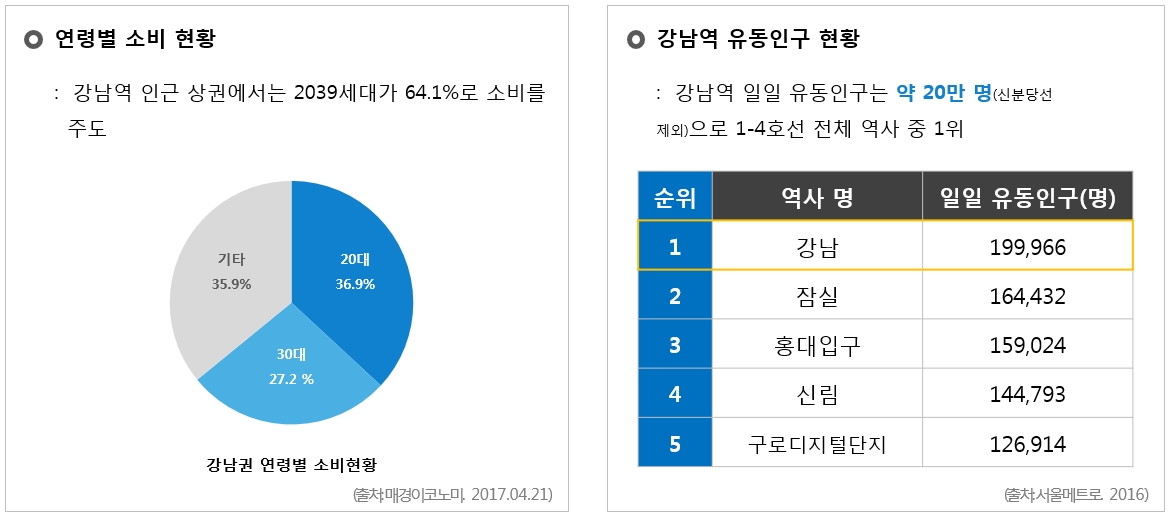 대한민국의 대표적인 초거대상권 강남역은 유동인구, 비지니스인구, 상업인구, 차량통행량이 매우 많은 지역입니다.
