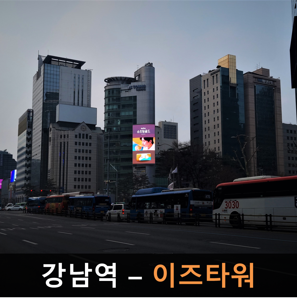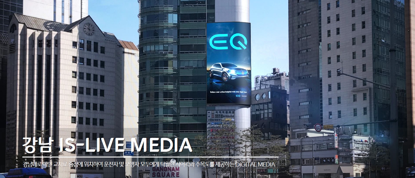 강남역의 최대상권 강남역 사거리에 설치되어 유동인구와 정체되는 차량이용객에게 집중