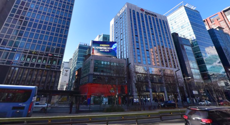 강남역 CGV 맞은 편에 설치된 강남대로 서초구의 유일한 단독 전광판
