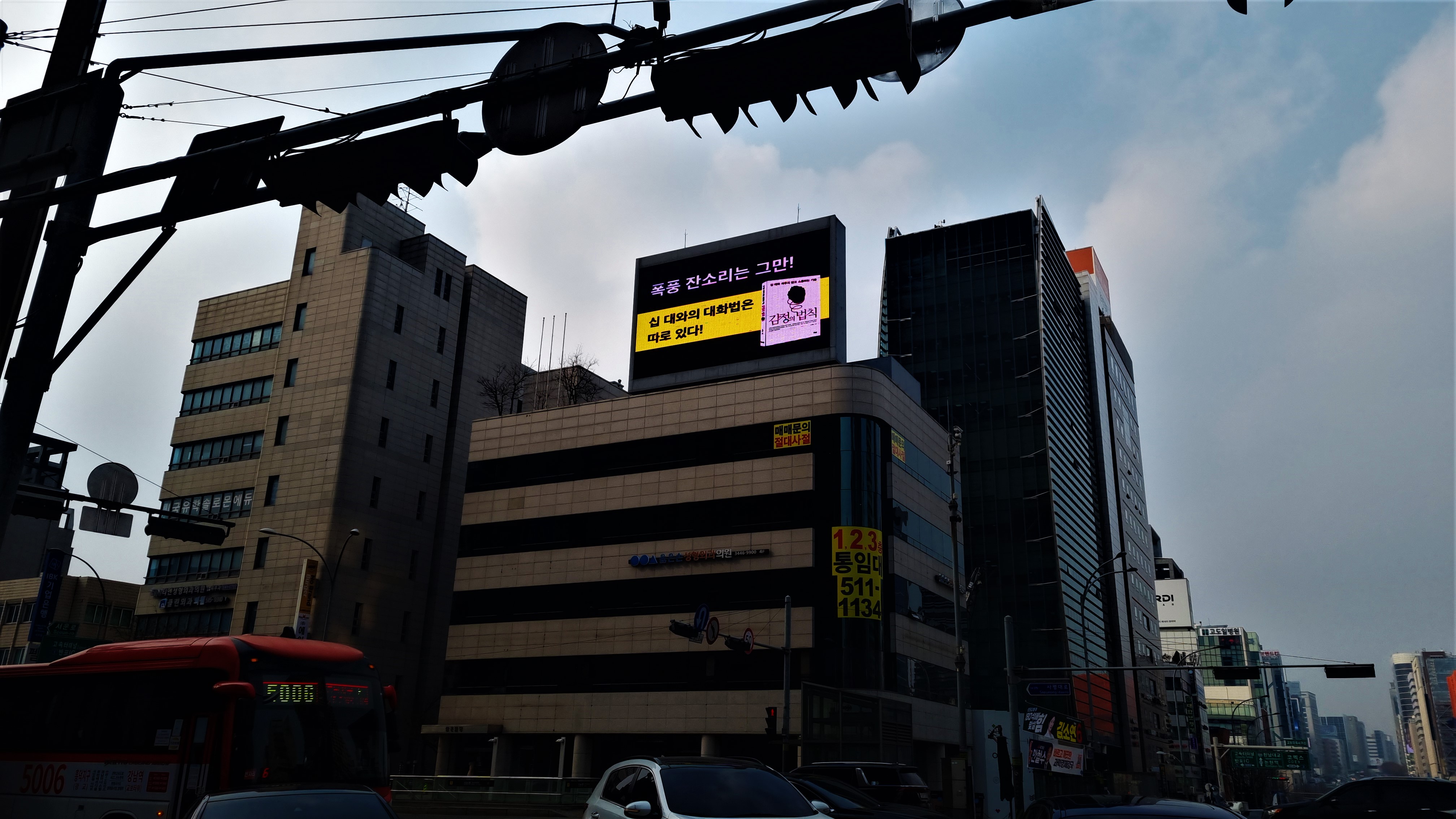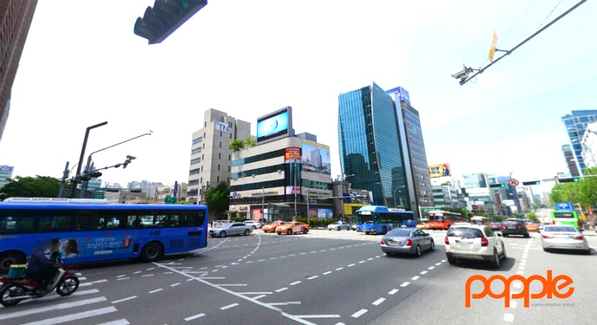 교보타워 사거리에 설치되어 강남대로의 신논현역 유동인구에게 노출되는 전광판