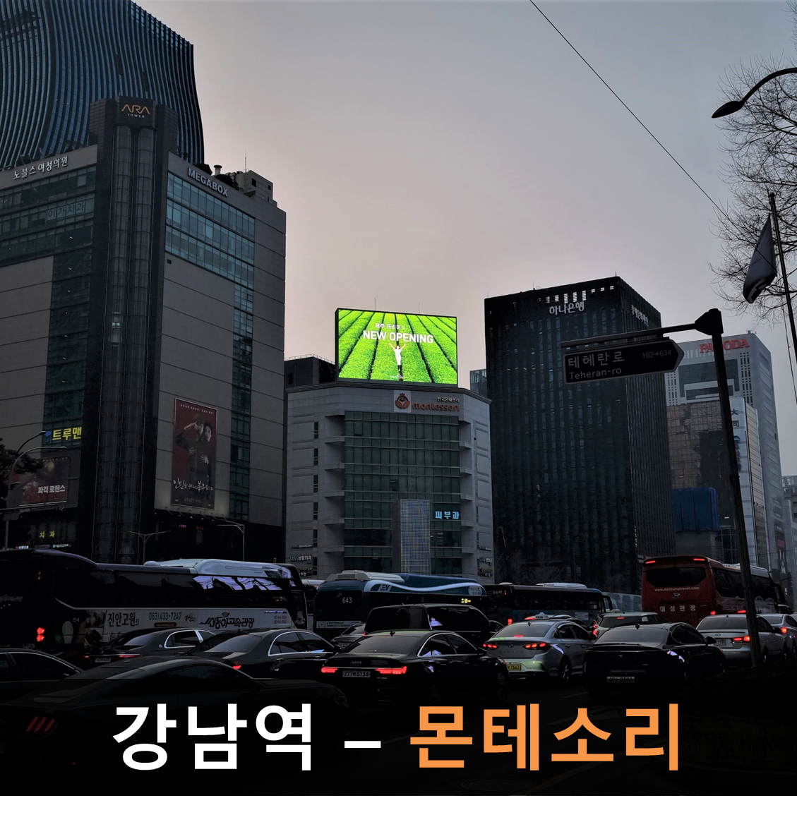 강남역의 최대상권 강남역 사거리에 설치되어 유동인구와 정체되는 차량이용객에게 집중