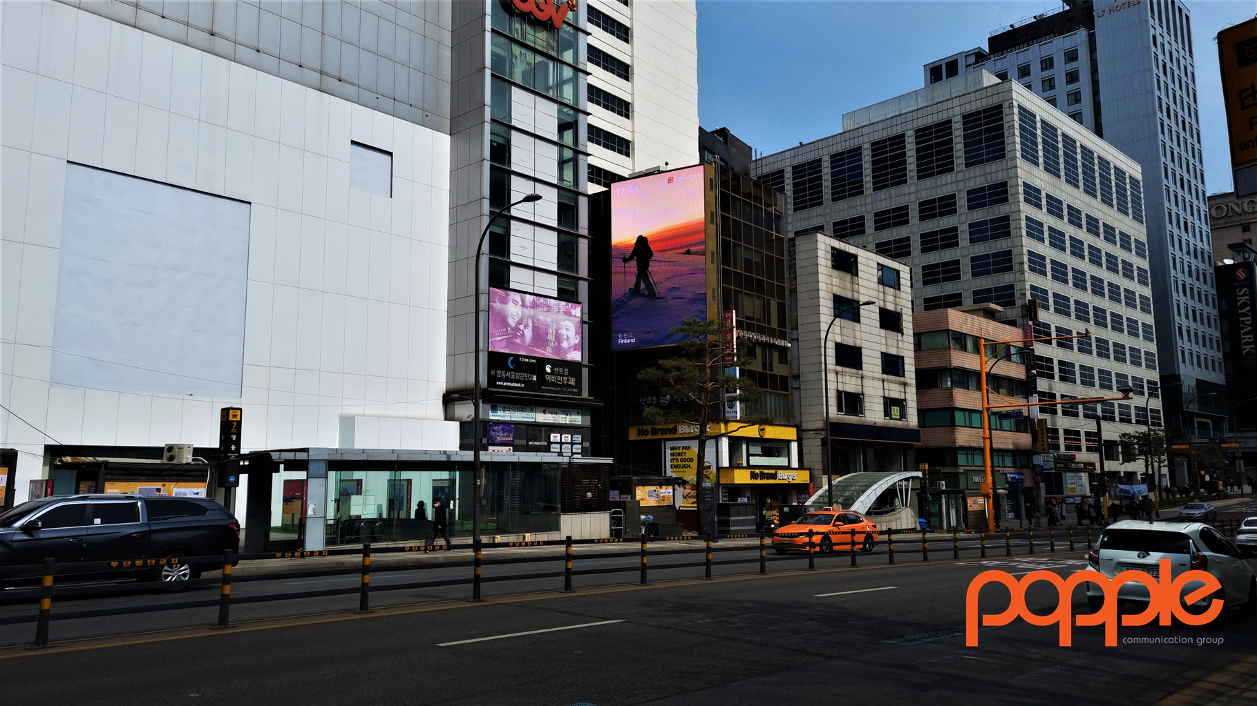 - 타지역과 다르게 명동 유네스코길 도보거리에도 전광판이 설치되어 유동인구 집중 타겟팅