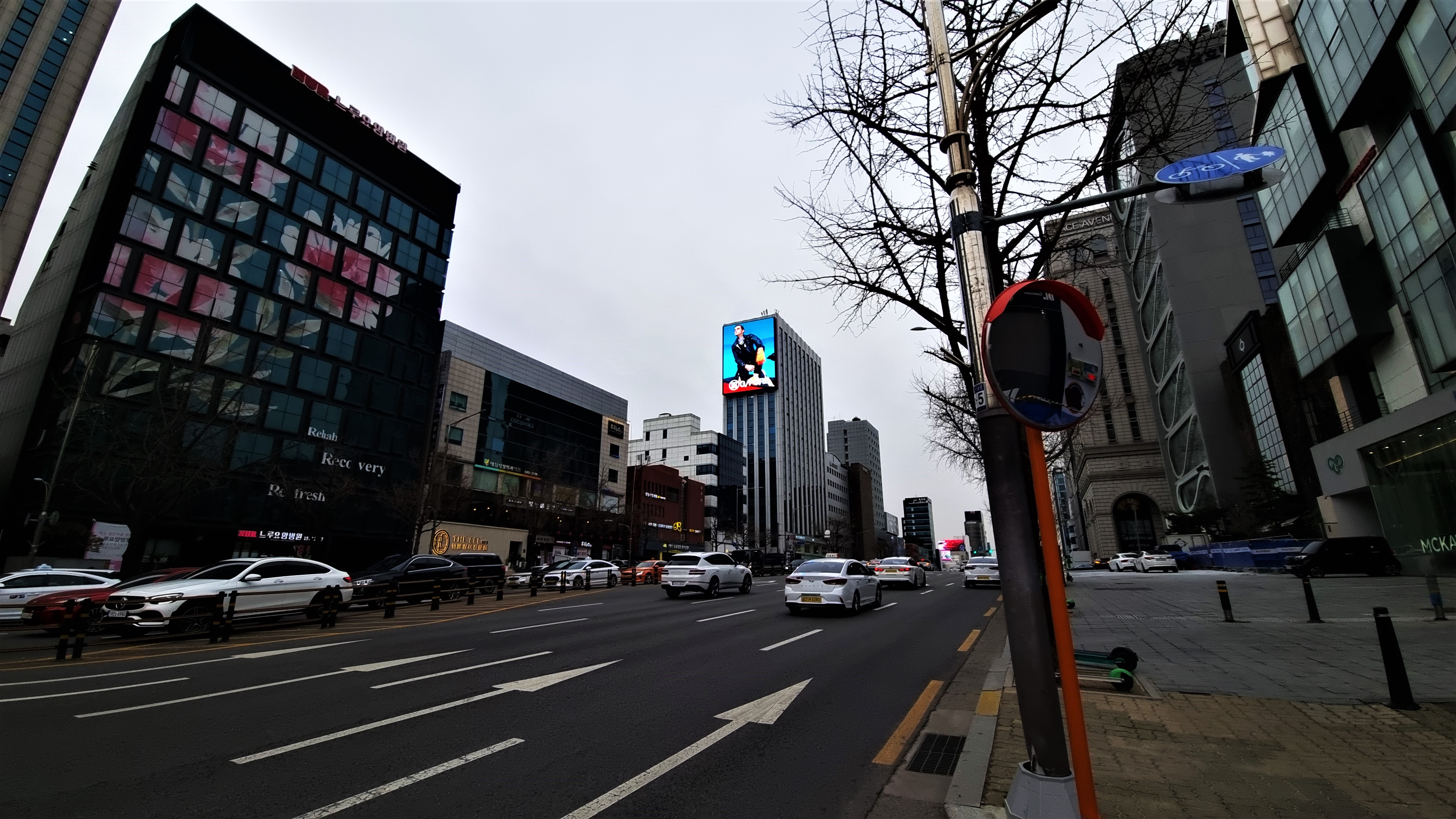 을지병원사거리에서 학동사거리 방면으로 설치된 세로형 전광판