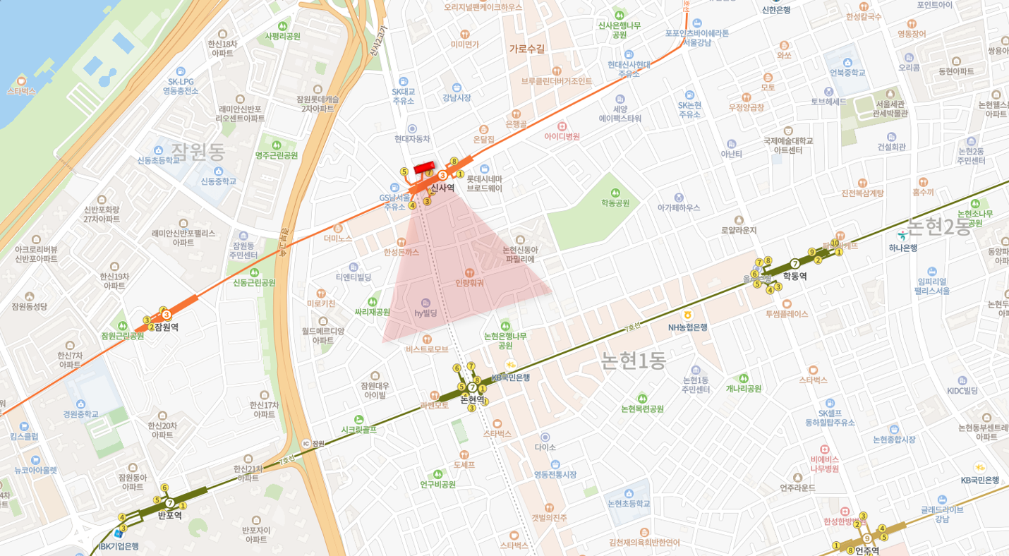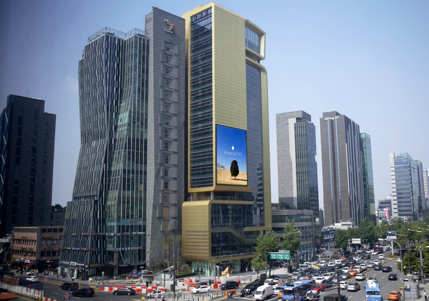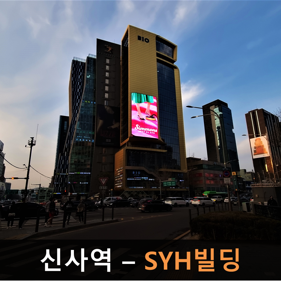 신사역 사거리에 설치되어 강남대로와 신사역 유동인구에게 노출