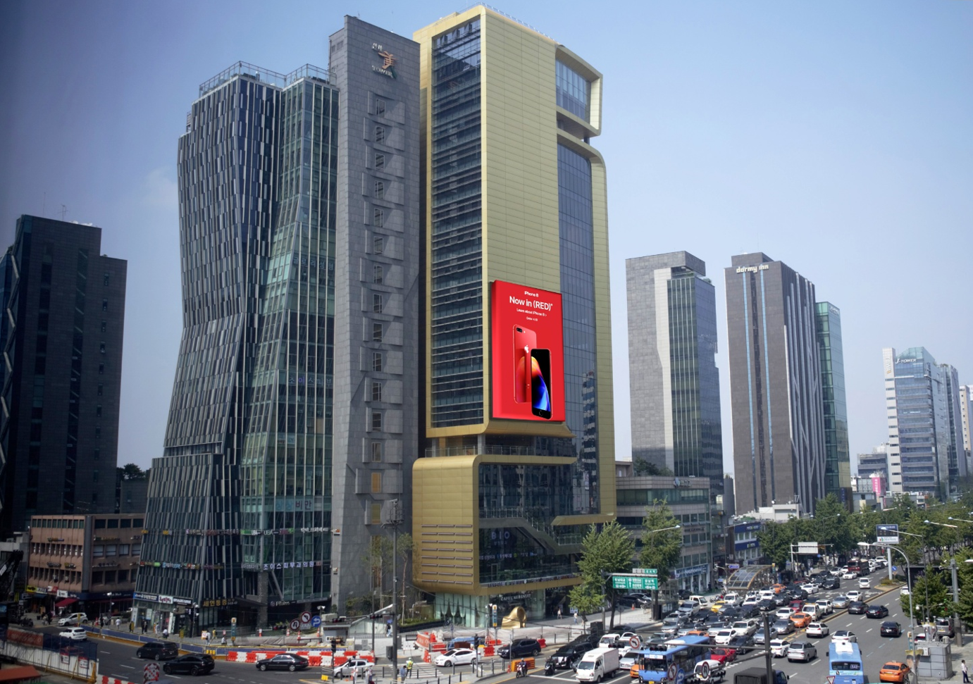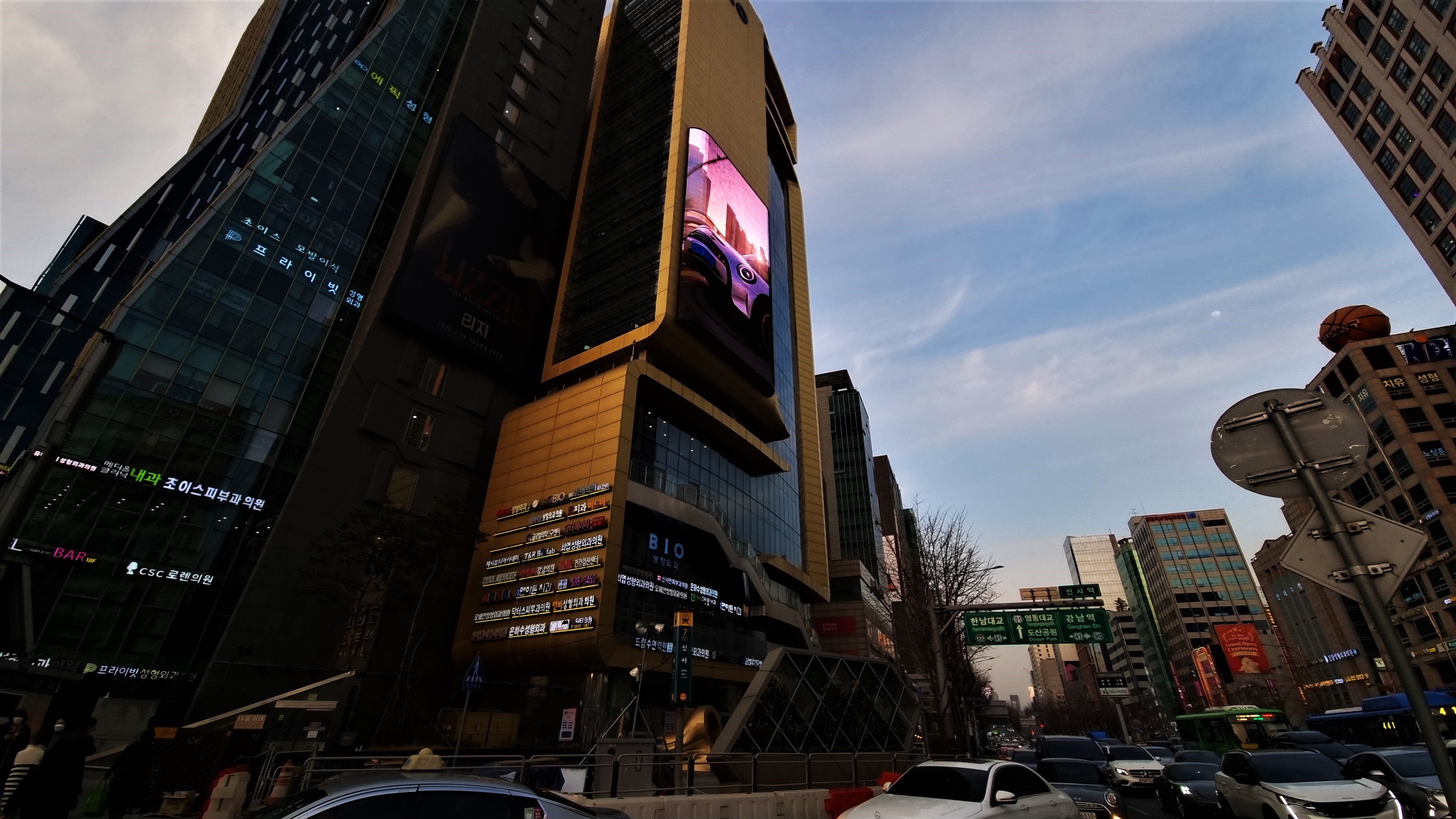 강남대로 교통 정체구간에 설치되어 주목도와 노출력이 뛰어난 전광판