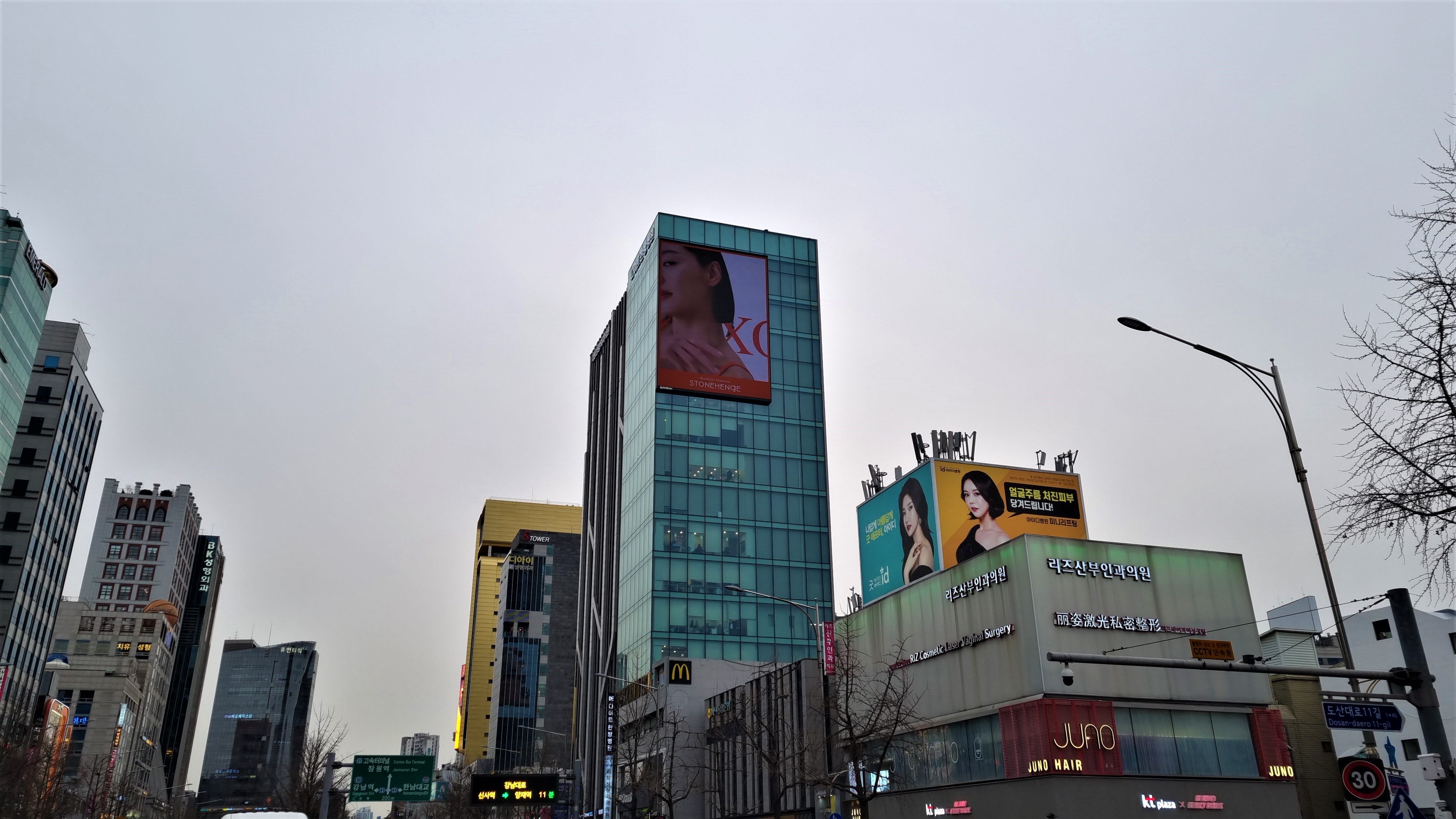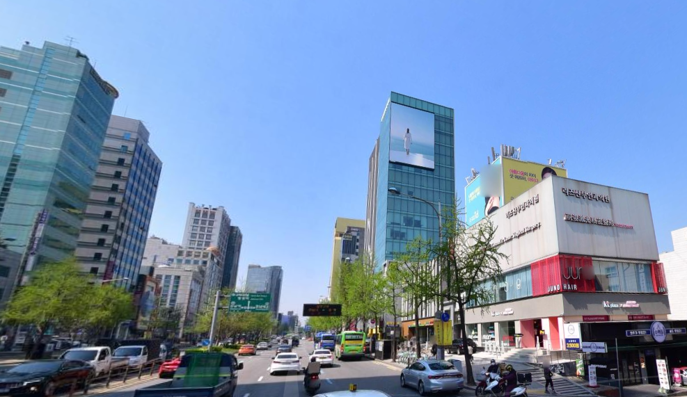 신사역 사거리에 설치되어 도산대로와 신사역 유동인구에게 노출