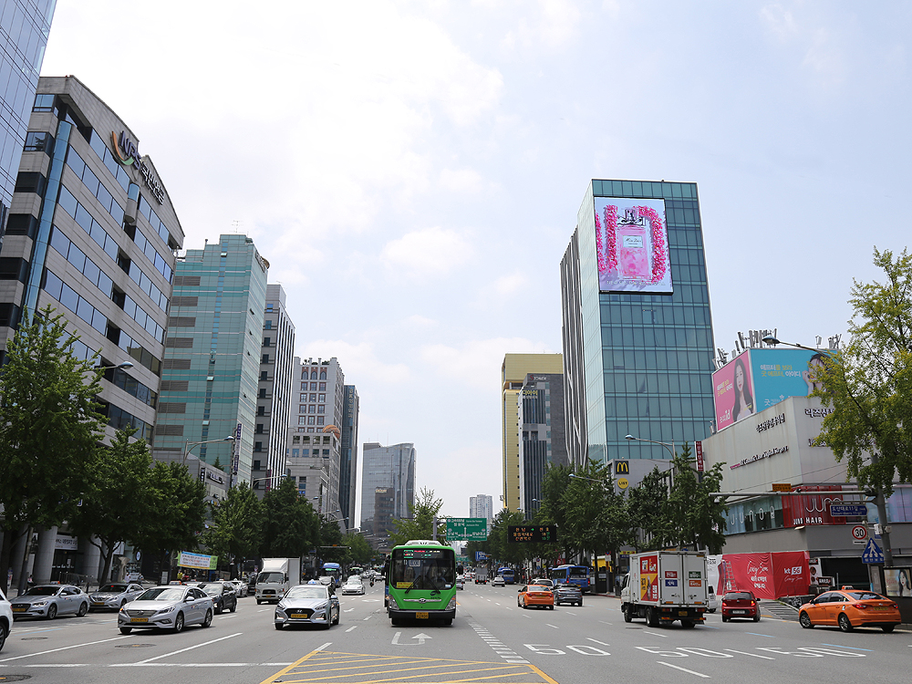 도산대로 교통 정체구간에 설치되어 주목도와 노출력이 뛰어난 전광판