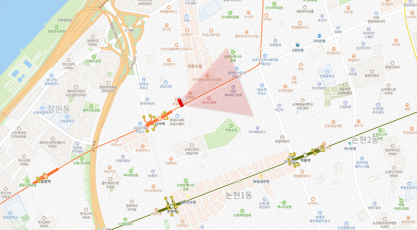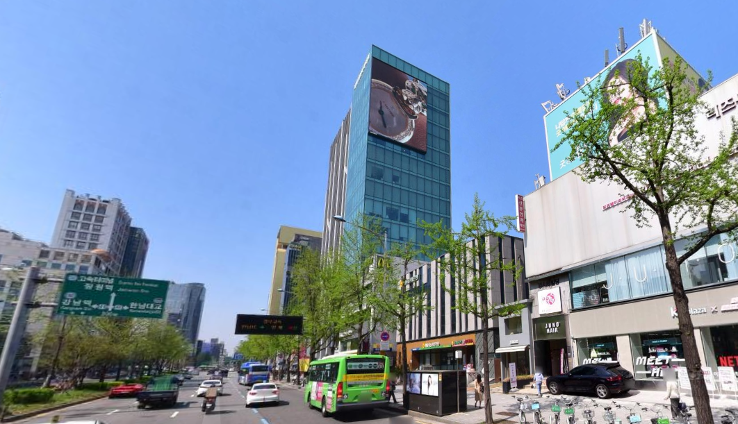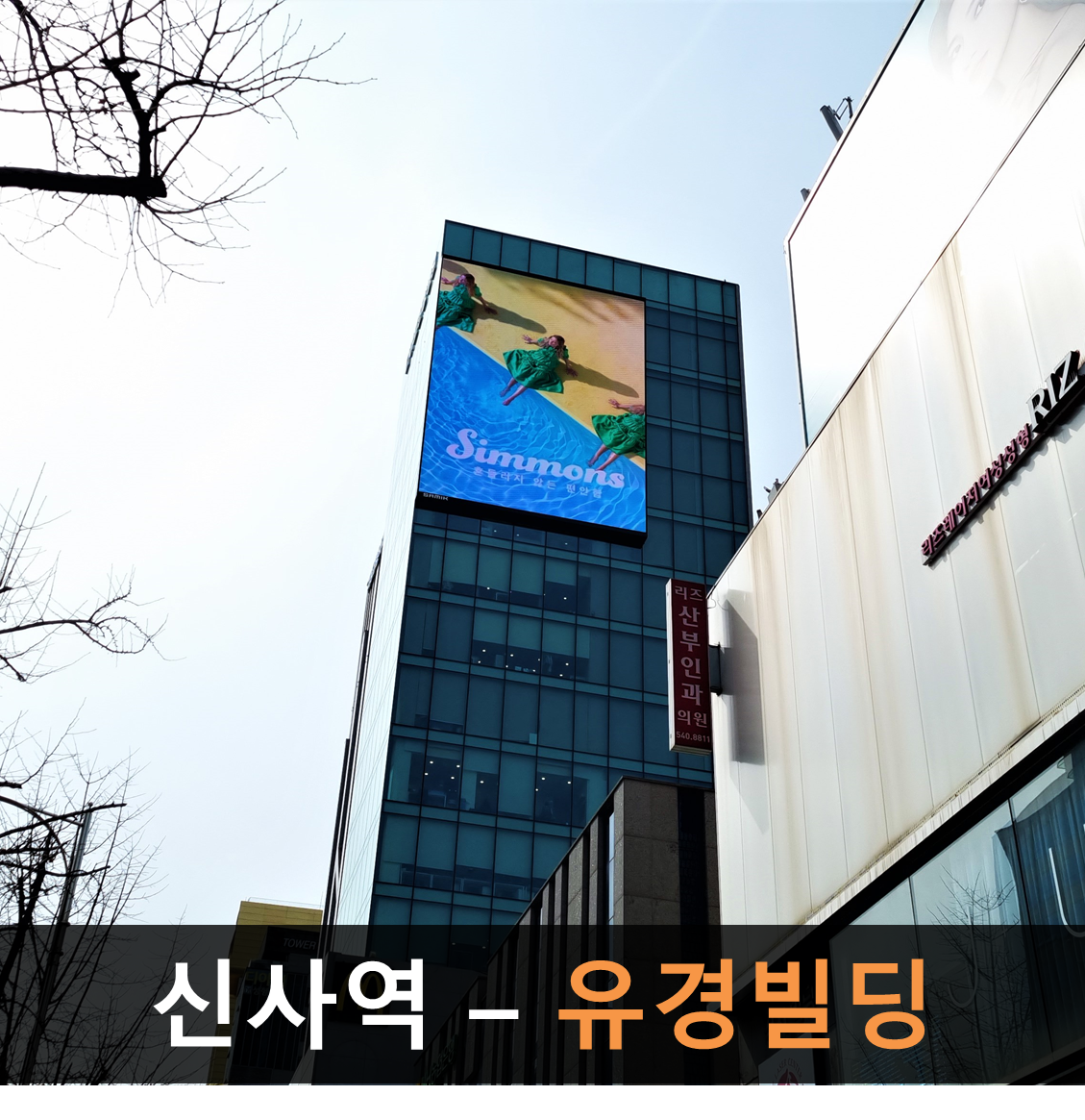 신사역 사거리에 설치되어 도산대로와 신사역 유동인구에게 노출