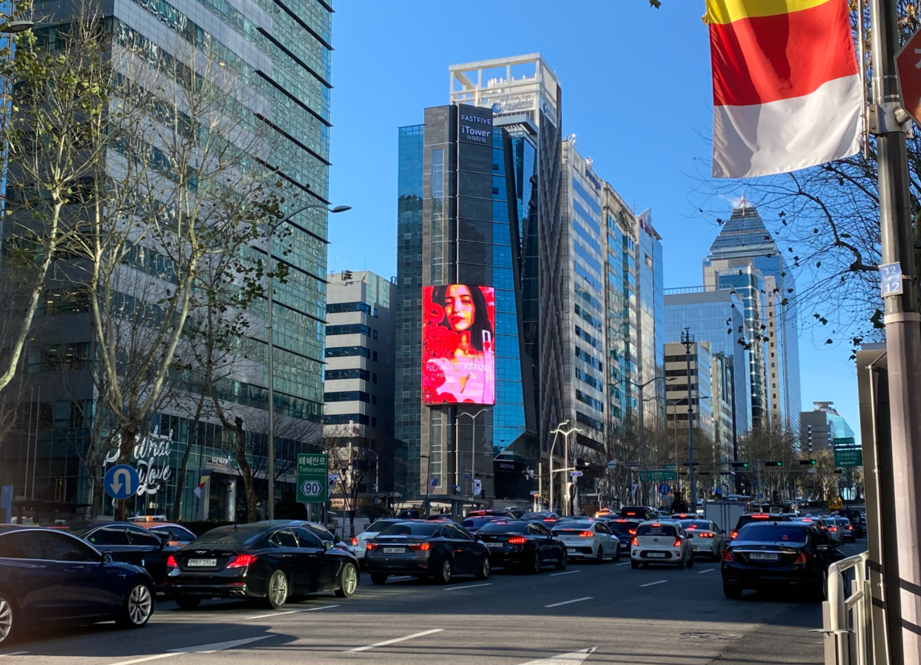 테헤란로 교통 정체구간에 설치되어 주목도와 노출력이 뛰어난 전광판