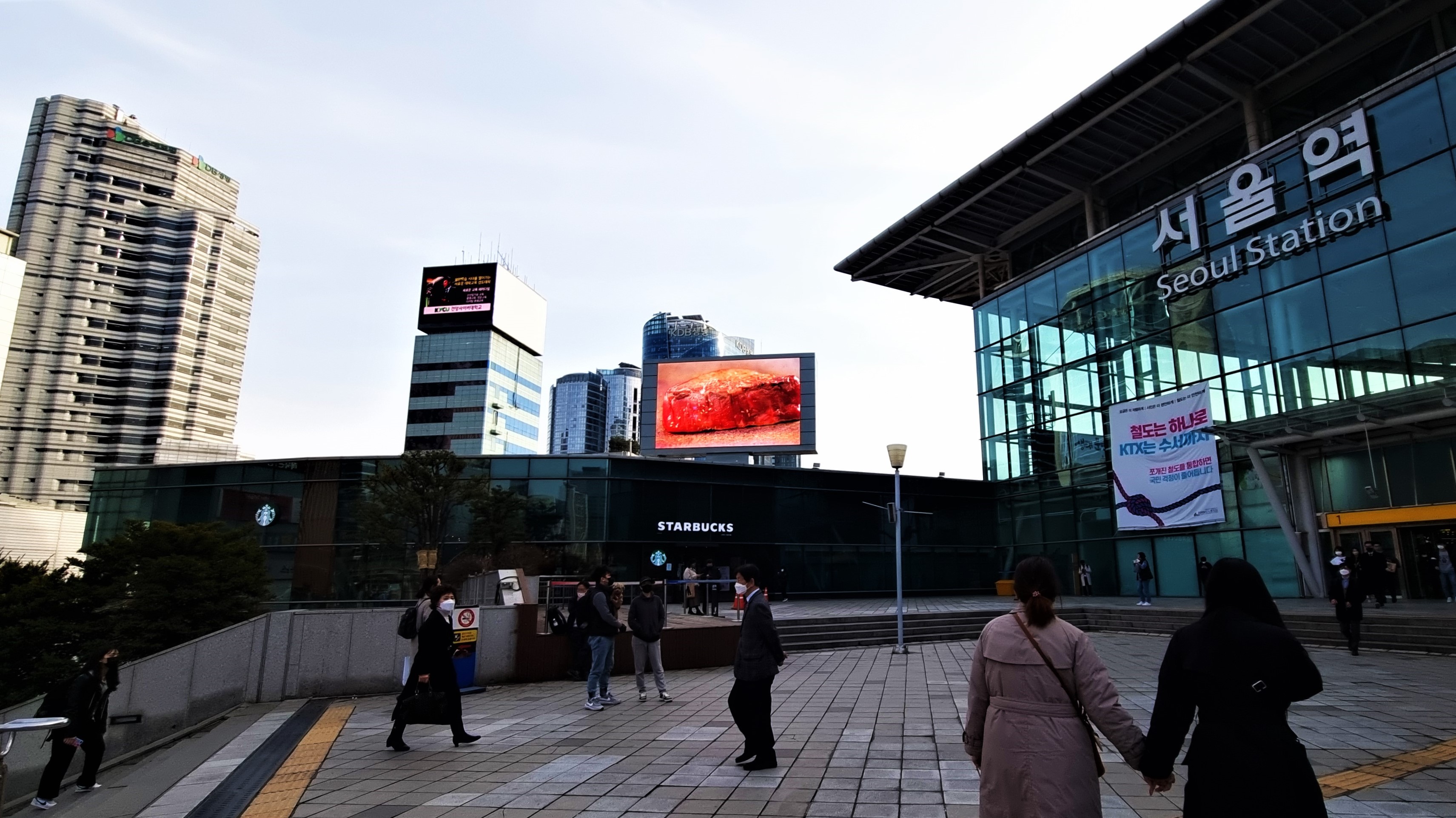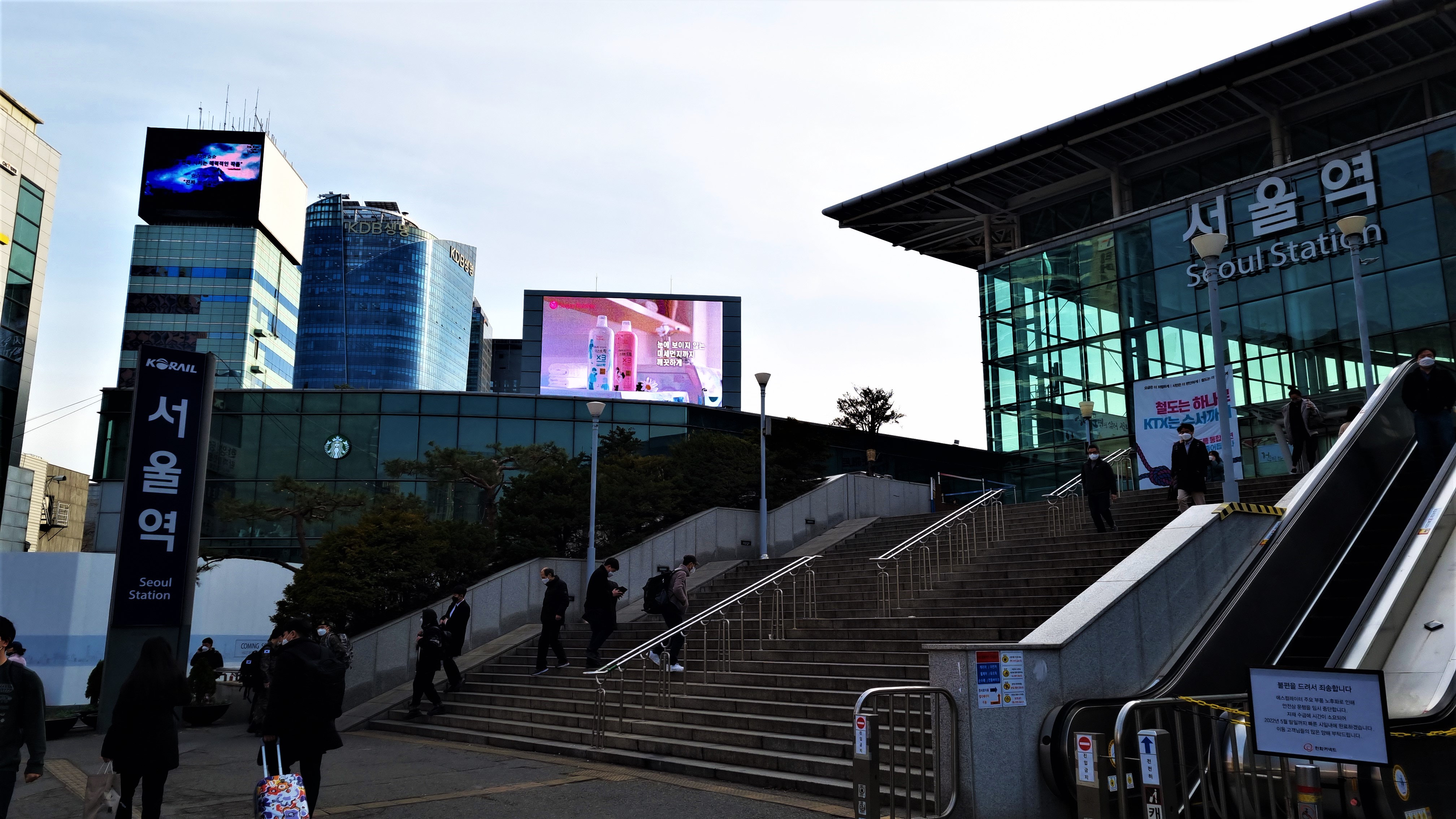 서울역을 대표하는 광장에 설치된 고해상도의 대형 LED 전광판