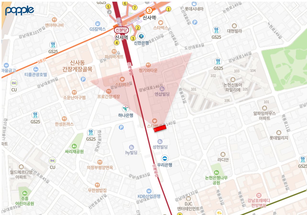 차량 이동량이 많은 강남대로에 위치하고 있어 높은 광고의 효과성