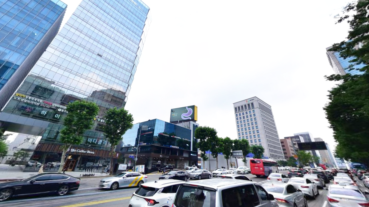 강남대로에 위치하고 차량 이동량이 다수 존재