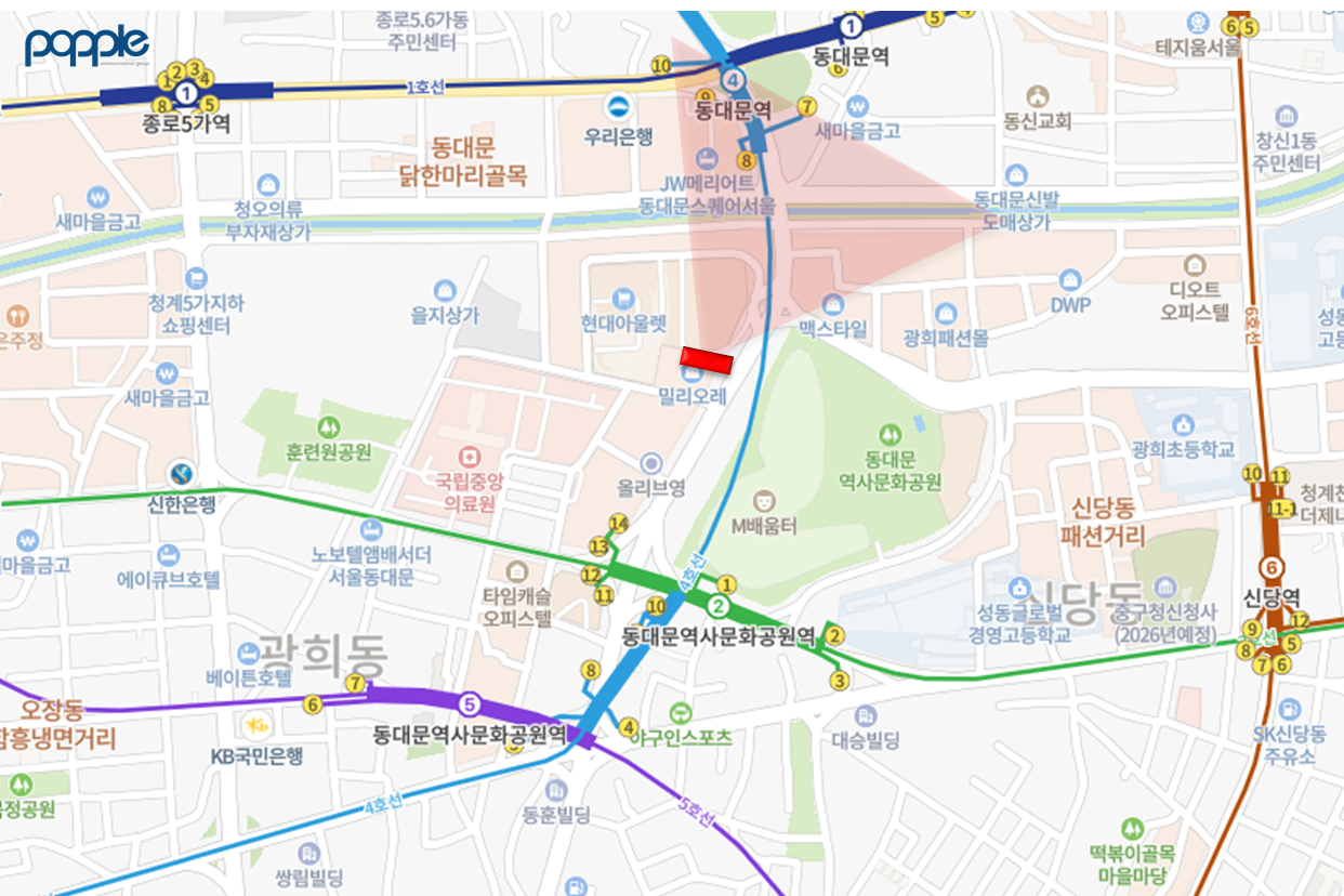 또한, 현대아울렛, 두산타워를 이용하는 유동인구에게도 광고 노출