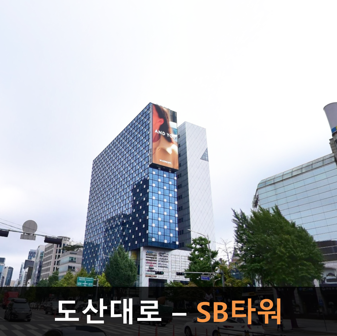도산공원 사거리에 가까이 위치하고 있어 신호 대기중인 차량에게 광고 노출