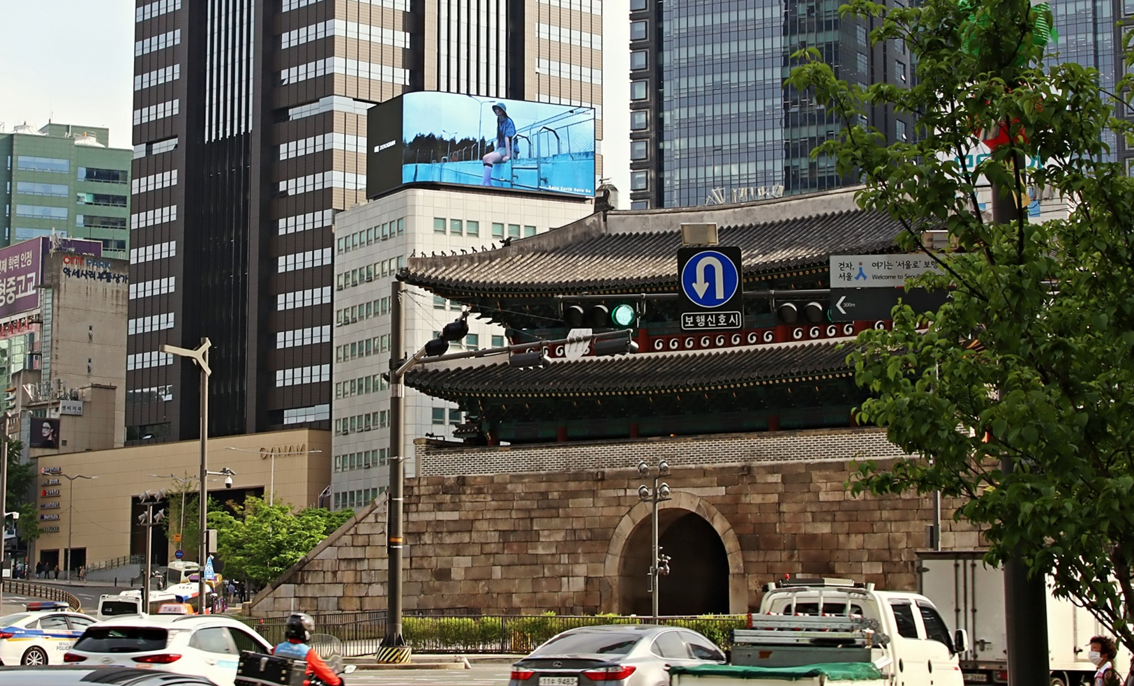 광화문에서 서울역 방면으로 가는 차량과 보행자에게 노출