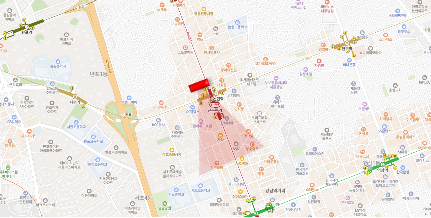 강남대로 인근에 위치하고 있어 높은 차량 이동률을 보유