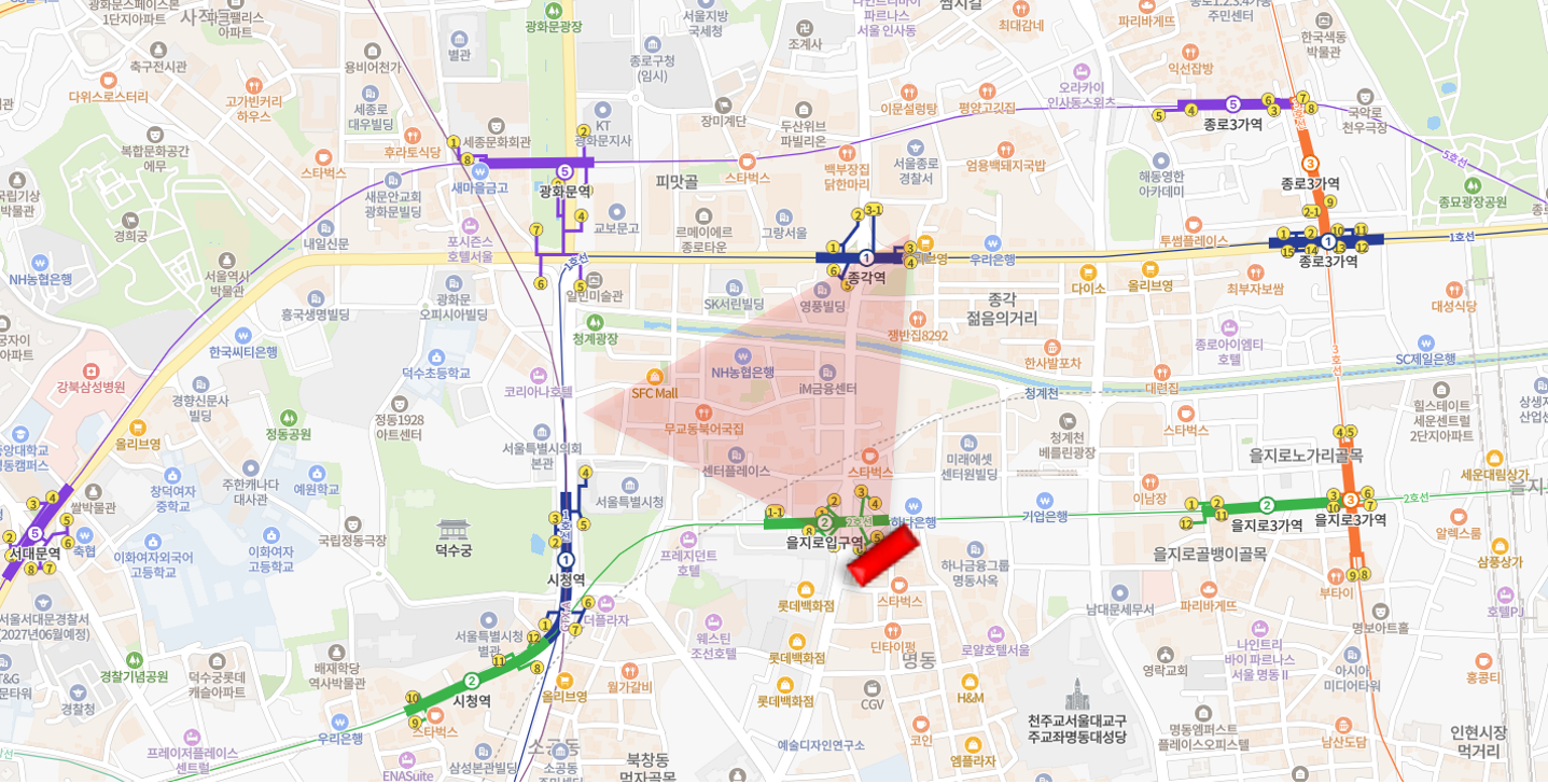 MZ들의 성지로 불리고 있는 을지로 (힙지로) 인근에 위치