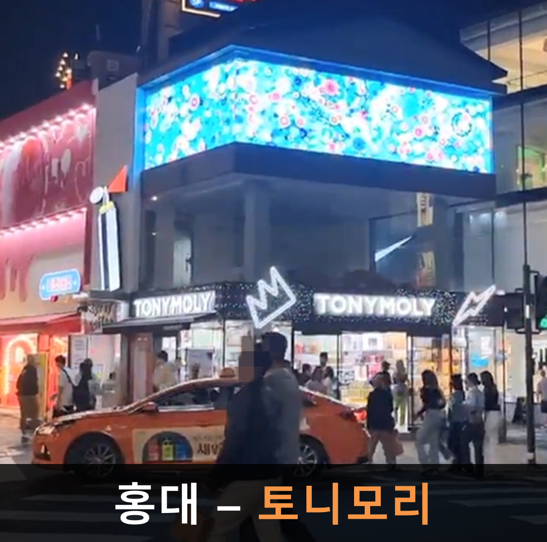홍대 메인사거리에 위치하여 있어 각계각층 많은 인구에게 노출