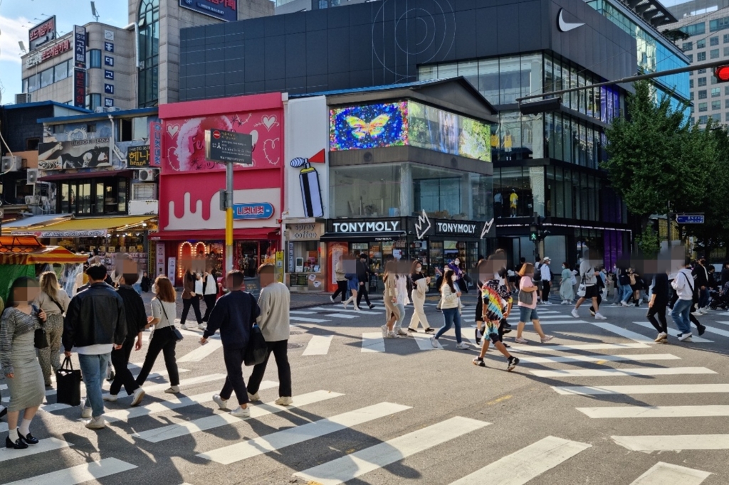 대한민국에서 유동인구가 가장 많은 지역 중 하나인 홍대에 위치