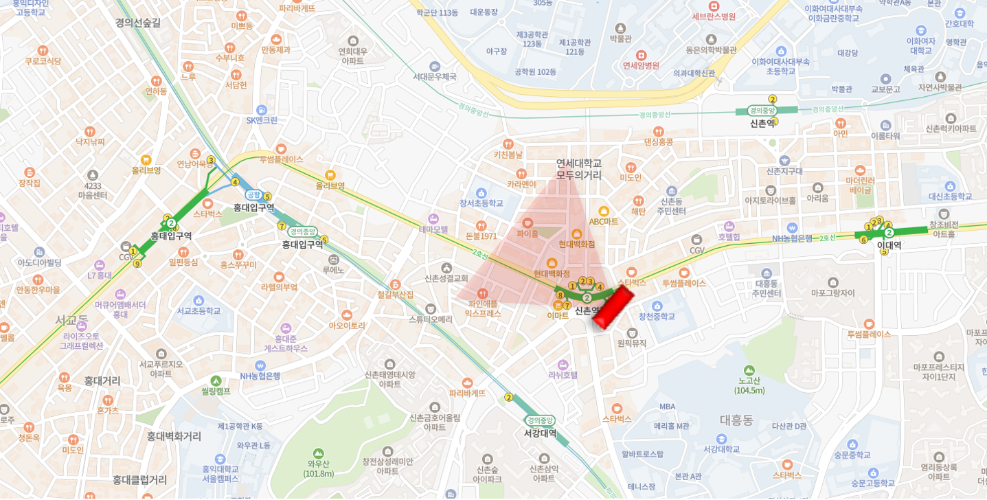 인근에 연세대, 이화여대 등 다양한 교육지가 많이 밀집해 있는 곳