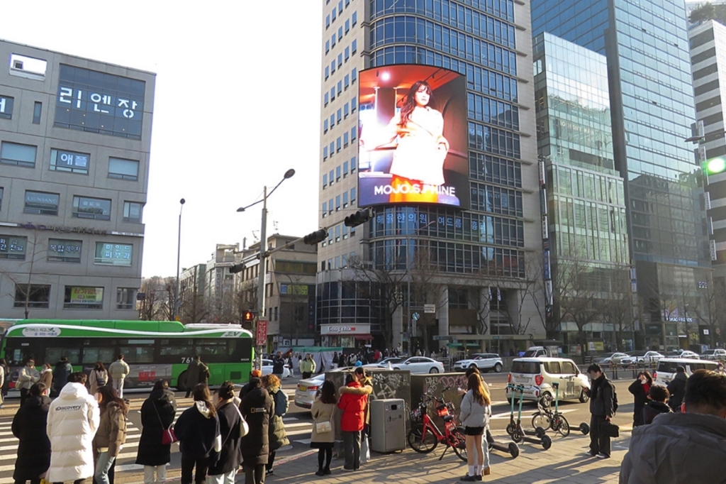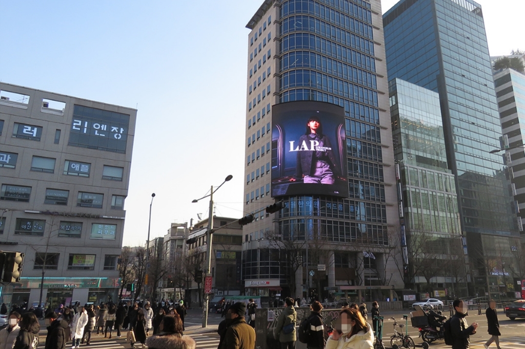 건물 외벽에 위치해 있는 세로형 전광판으로 높은 가시성 자랑