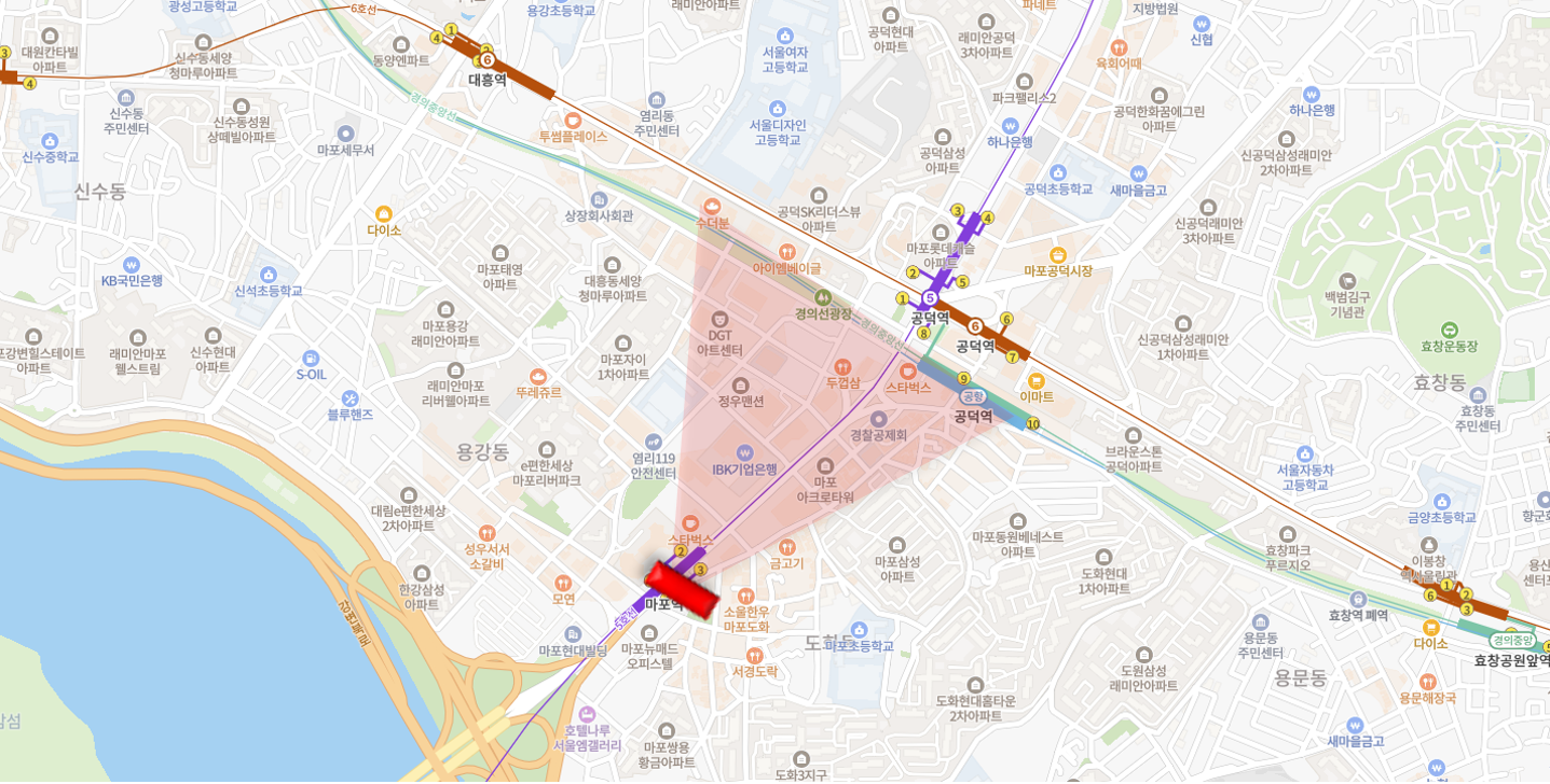 인근에 마포개됴가 있어 다양한 운전자들에게 노출되어 높은 가시성 자랑