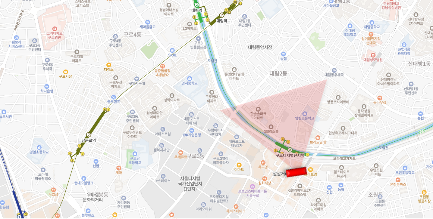 서울 구로구와 금천구의 경계에 위치한 IT 및 스타트업 중심지